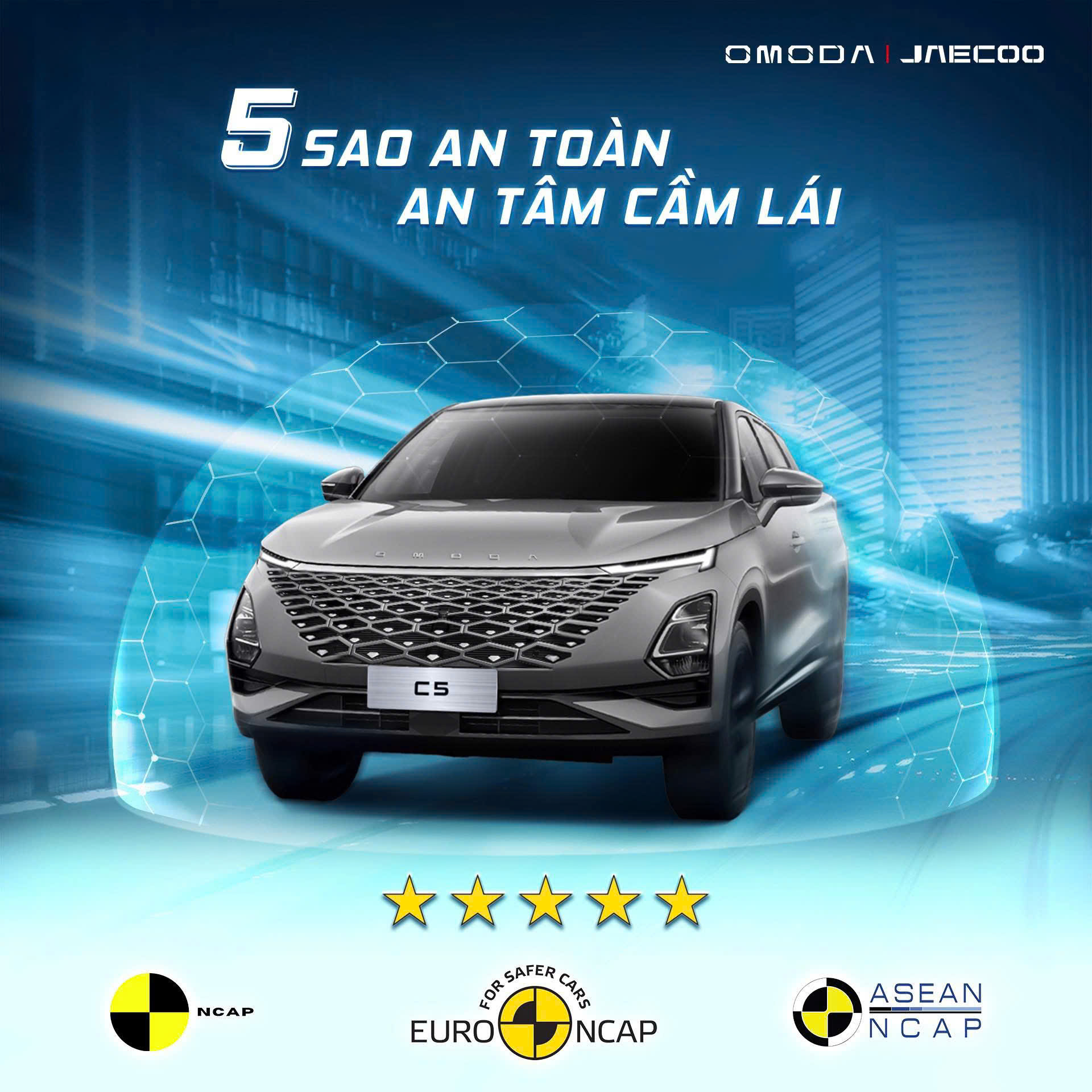 Xe đạt chuẩn an toàn 5 sao của Euro NCAP, mang đến sự yên tâm tối đa cho người dùng trong mọi hành trình dài – ngắn.